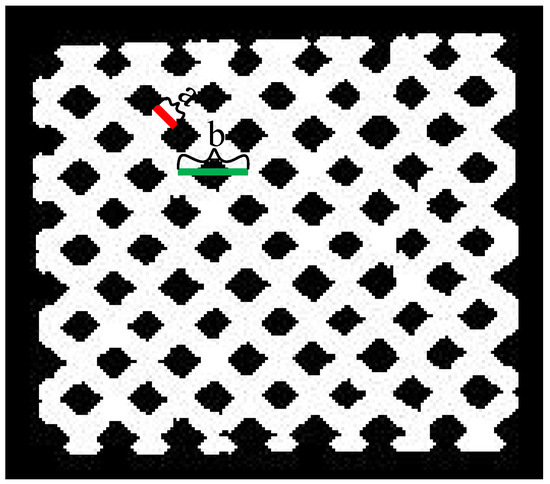 Inspired by the method of reference [33], we extract the 2D skeleton of sieve net. The key idea is that the deletion of pixels in the current iteration of the algorithm depends only on the result of the previous iteration. Each iteration marks the target pixels that meet the deletion conditions. After iterating through the whole image, all marked points are deleted until no pixel is marked in a given iteration. Then, the iteration is completed, and the image obtained after deleting the marked points is the refined skeleton image.