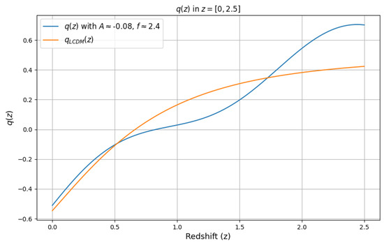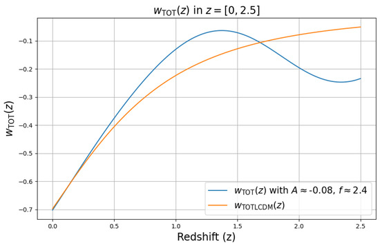 In Section IV, we illustrate the behavior of the Hubble parameter at low redshifts, the deceleration parameter, and the effective equation of state for the chosen values of the frequency and amplitude in Equation (7).