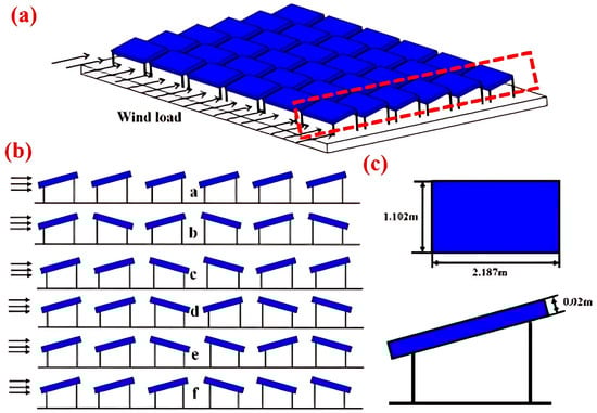 Another essential consideration influencing FPV aerodynamics is the spatial arrangement and configuration of solar panels within the array system. The angular orientations within the array system influence the flow field characteristics. A previous study by [37] analysed the influence of panel orientation on the aerodynamic behaviour of the FPV. Figure 11 illustrates the arrangement adopted Figure 11a is the standard configuration adopted by most studies.
