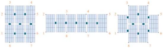 Hydrodynamic performance study of floating photovoltaic arrays with multiple floating photovoltaics, each of which marked 1–8 respectively [56].