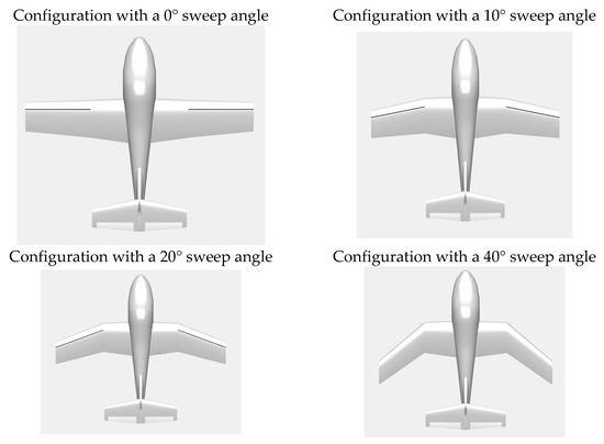 Figure 3 displays changes in aircraft geometry with the change in the wing sweep angle.