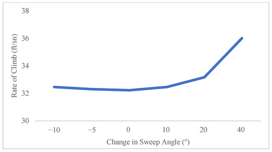 The T-37B-like aircraft was modeled using the DATCOM and OPEN VSP programs, and the values obtained were found to be consistent with the data from the literature review. The performance model was established, and it was determined to agree with the published performance values. Then, the effect of the aircraft sweep angle was examined. Concerning the performance calculations, the most significant differences were observed between 0° and 40° sweep angles. Hence, all comparisons below were made for the two cases.