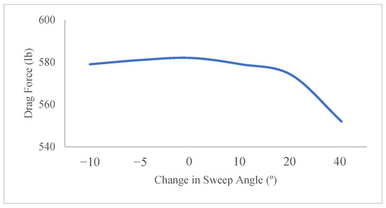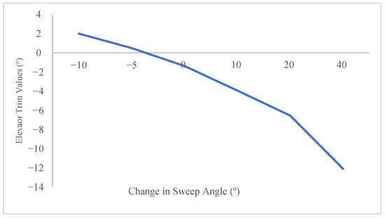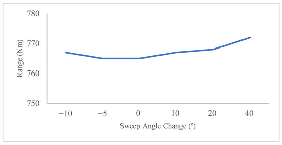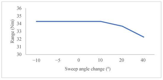 29]. In this study, sweep angle variation is applied only to part of the wing, meaning that the shift affects only a small fraction of the total aircraft weight. Consequently, while about 95% of the mass remains unchanged, only ~5% of the weight shifts slightly rearward, making the CG displacement negligible for the scope of this preliminary analysis.