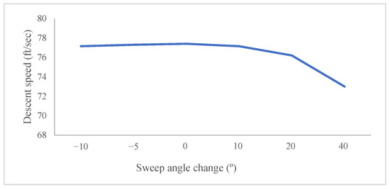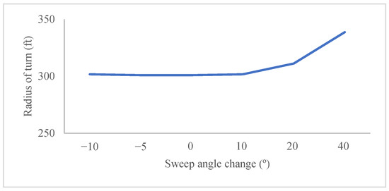 It was found that the symmetrical change in the wing sweep angle adversely affected the takeoff performance and increased the takeoff distance by 12% in the case of a 40° sweep angle change. The change in sweep angle positively affected climb performance, increasing it by 11%. It reduced the aircraft’s drag force by 5.2% during the cruise flight and increased the range by 1%. It reduced the range by 5.8% in the glide flight, so the 40° sweep angle change had a negative effect in this aspect. It was calculated that, in the descent case, the descent speed decreased by 4%, similar to gliding, and the sweep angle change adversely affected it. Upon evaluating the approach performance, an 8% increase in approach speed was calculated, and it was observed that the sweep angle change negatively affected it. A 12% increase in the radius of turn and a 12% decrease in the turning speed were calculated. The impact on the radius of turn and turning speed was evaluated as negative.