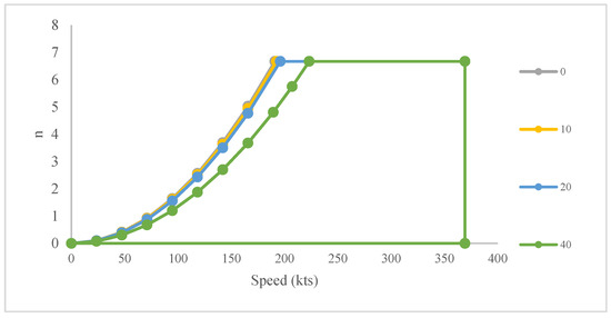 Figure 38 presents the responses of the aircraft in the short period mode according to changing sweep angles. It is seen that the aircraft is dynamically stable in the short period mode. As expected, although the aircraft is stable earlier between −10° and 10° sweep angle changes, this situation does not continue at 20° and 40° sweep angle changes. Whereas the positive increase in the aircraft sweep angle has a positive effect in cases changing between −10° and 10°, it has an uncertain impact at 20° and 40° sweep angle changes.