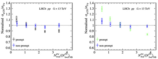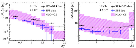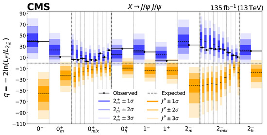 - CMS Collaboration. Measurement of Prompt J/ψ Pair Production in pp Collisions at = 7 TeV. J. High Energy Phys. 2014, 9, 94. [Google Scholar] [CrossRef]