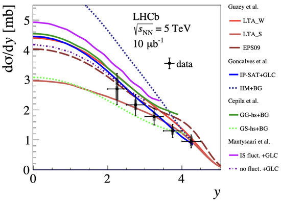 - Cepila, J.; Contreras, J.G.; Krelina, M. Coherent and incoherent J/ψ photonuclear production in an energy-dependent hot-spot model. Phys. Rev. C 2018, 97, 024901. [Google Scholar] [CrossRef]