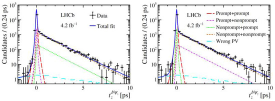 - LHCb Collaboration. Measurement of ψ(2S) polarisation in pp collisions at = 7 TeV. Eur. Phys. J. C 2014, 74, 2872. [Google Scholar] [CrossRef]