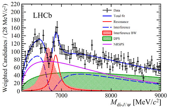 - LHCb Collaboration. Observation of J/ψ pair production in pp collisions at = 7 TeV. Phys. Lett. B 2012, 707, 52–59. [Google Scholar] [CrossRef]
