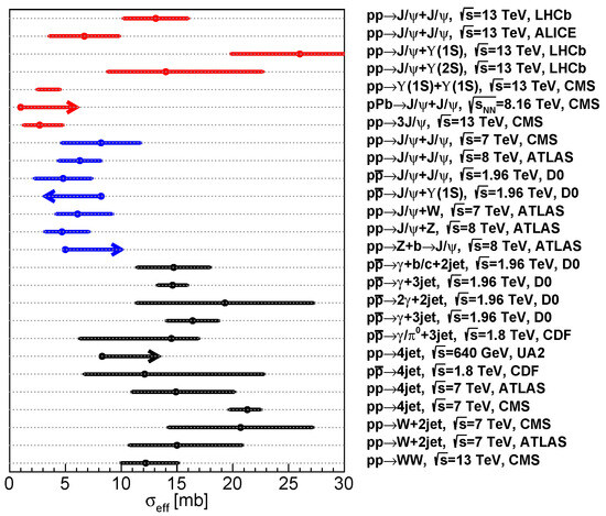 - d’Enterria, D.; Snigirev, A.M. Triple parton scatterings in high-energy proton-proton collisions. Phys. Rev. Lett. 2017, 118, 122001. [Google Scholar] [CrossRef] [PubMed]