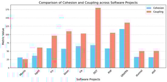 - Alzamil, Z.A. Software Coupling and Cohesion Model for Measuring the Quality of Software Components. Comput. Mater. Contin. 2023, 77, 3139–3161. [Google Scholar] [CrossRef]