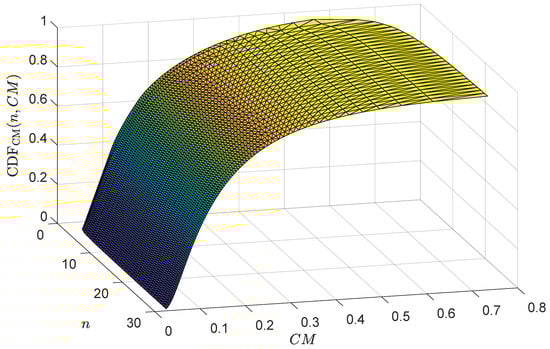 A 3D plot for CDF of CM as a function of sample size (n) and statistic value ().