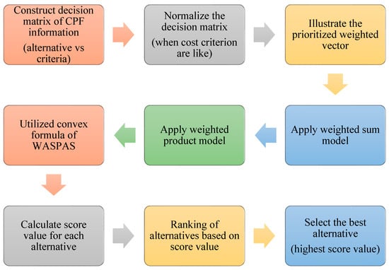 The flowchart depicting the algorithm using the proposed WASPAS technique in the context of CPF information is shown in Figure 3 for clarity.