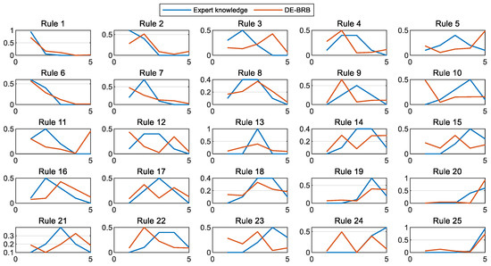 Appendix B.2. Optimized Rule Weights and Belief Distributions After WOA Training