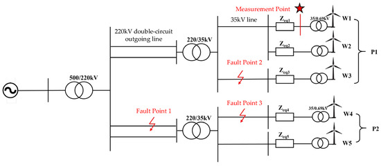This study analyzes offshore wind AC symmetric faults, identifies PCC transient voltage factors, simplifies the model (Figure 1) with a submarine cable focus, and uses references [25,29,30,31].