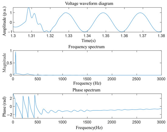 In transient voltage expression (2), the amplitude ratio of the transient component (first term) to the steady-state component (second term) reflects symmetry-breaking intensity: initial faults show significant symmetry breaking, while system recovery shifts to steady-state symmetric component dominance. This “transient asymmetry–steady-state symmetry” evolution is a direct manifestation of the symmetry–asymmetry dynamic mechanism in voltage time-domain characteristics.