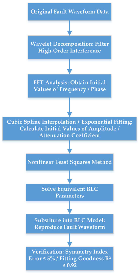 This method realizes voltage rise/fall control by adjusting static short-circuit impedance and switching step-up RC components [11]. Its core limitation lies in static parameter adjustment: it cannot simulate the dynamic evolution of “symmetry–asymmetry” (and only reflects steady-state voltage changes). In contrast, the proposed RLC model embeds symmetry–asymmetry constraints and realizes dynamic simulation of transient waveforms via wavelet decomposition and nonlinear least squares. As verified in Section 5.1, the proposed method reduces the reproduction error of asymmetric features to R2 ≥ 0.92, while the traditional impedance method has an asymmetric feature fitting error exceeding 20%.