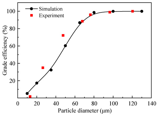 | Authors | MP Material (Density, g/cm3) | MP Size (μm) | Hydrocyclone Diameter (mm) | Experimental Efficiencies (%) | Numerical Efficiencies (%) |