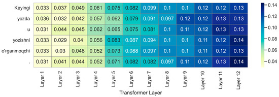 Moreover, suffixes located nearer the word end tend to dominate attention, in line with Turkic morphological typology, where final morphemes often encode core syntactic functions. Importantly, attention is not arbitrarily concentrated on a single segment; instead, it is distributed across semantically complementary affixes—particularly in polymorphemic forms like kelüülükübüz—reflecting the compositional structure of agglutinative morphology.