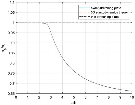 Figure 3, we can see that the dispersion curve based on the vibration equation of the exact stretching plate theory is very close to the dispersion curve of longitudinal vibration equation in three-dimensional elasto-dynamics, while the dispersion curve of longitudinal vibration equation of plate based on plane stress problem is a straight line.