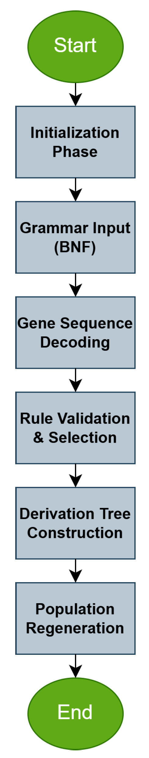 - Ryan, C.; Collins, J.; O’Neill, M. Grammatical evolution: Evolving programs for an arbitrary language. In Genetic Programming. EuroGP 1998; Banzhaf, W., Poli, R., Schoenauer, M., Fogarty, T.C., Eds.; Lecture Notes in Computer Science; Springer: Berlin/Heidelberg, Germany, 1998; Volume 1391. [Google Scholar]