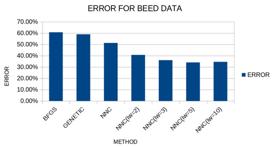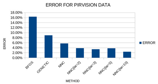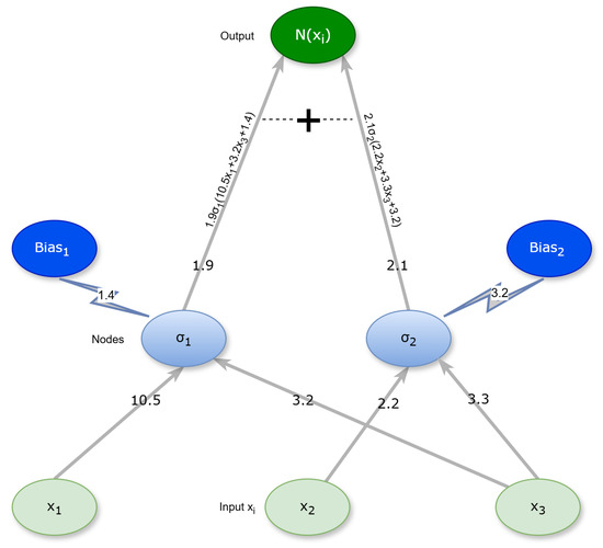 During the first phase, an optimization method should be utilized to train a neural network with a fixed number of weights. In the present work, a genetic algorithm was incorporated as the optimization procedure. Genetic algorithms were initially proposed by John Holland [53], and can be considered a global optimization procedure that has been used in a multitude of problems. This method is inspired by biology and it can simulate the evolutionary process through the genetic operations of mutation, natural selection, and crossover [54,55,56]. This method has been applied in cases such as robotics [57], energy problems [58], agriculture problems [59], etc. The neural networks considered here are in the following form:
