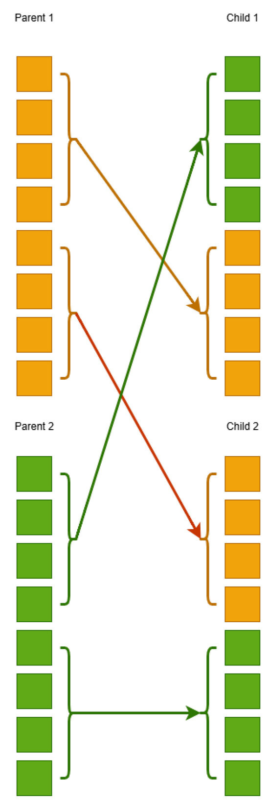 Figure 4. An example of the one-point crossover procedure. - (c)
