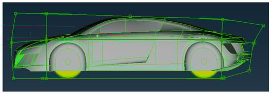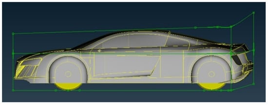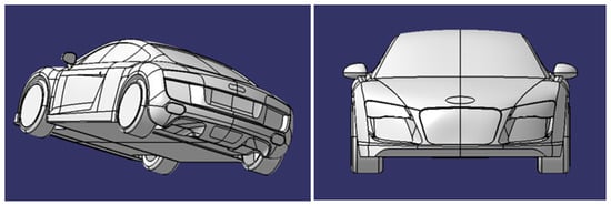 In this research, the Audi R8 (with mirrors and smooth underbody) is selected as the car model. The three-dimensional geometrical modeling values of the AUDI R8 are given in Table 2. Further, the other dimensions were obtained using the 3D tracing of the car profile using commercial CAD Software 2021, as shown in Figure 6.