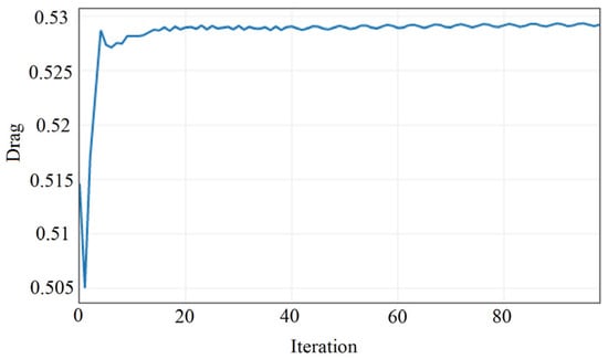 The convergence histories of the drag coefficients for the vehicle with spoiler geometry.