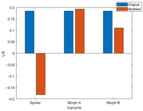 Lift coefficient of the modified variants compared to the original design.