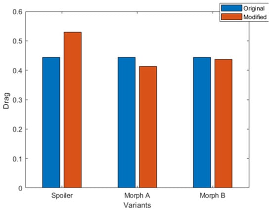 Drag coefficient of the modified variants compared to the original design.