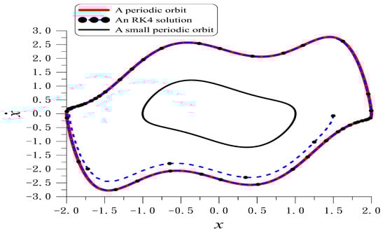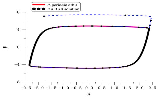Either we can integrate Equations (21) and (22) by subjecting them to the initial values and to compute the period by in Equation (25), or simply we use the new theoretical formula (30) to compute the period. No matter which formulation is undertaken, can be determined by minimizing the error to satisfy the periodicity conditions (4):