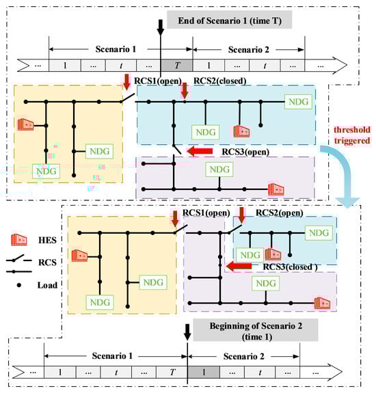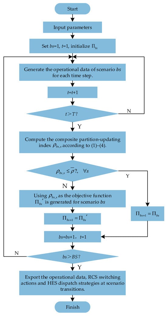 - For scenarios that require reconfiguration, the composite partition-updating index is adopted as the objective function for the expected operation in the subsequent scenario, guiding the joint planning of RCS switching states and HES outputs to maintain the optimal partition configuration.
