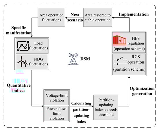 The multi-scenario dynamic operation strategy of the FMG is illustrated in Figure 3. Within each scenario, fluctuations in loads and NDGs are quantified, and the corresponding partition-updating index of that scenario is computed. If this index exceeds a preset threshold, the FMG automatically optimizes a more suitable operation scheme for HES and a partition scheme for RCS. These adjustments are then executed to restore stable operation of the area under the given scenario.