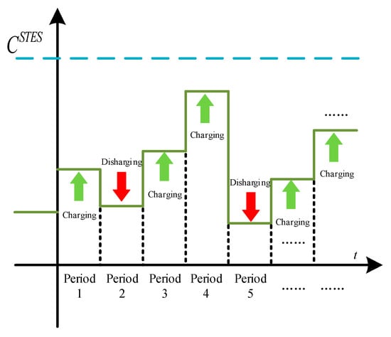 STES operation is highly flexible and enables short-term adjustment of the charging and discharging states. The operating model of STES is defined by (10)–(13):