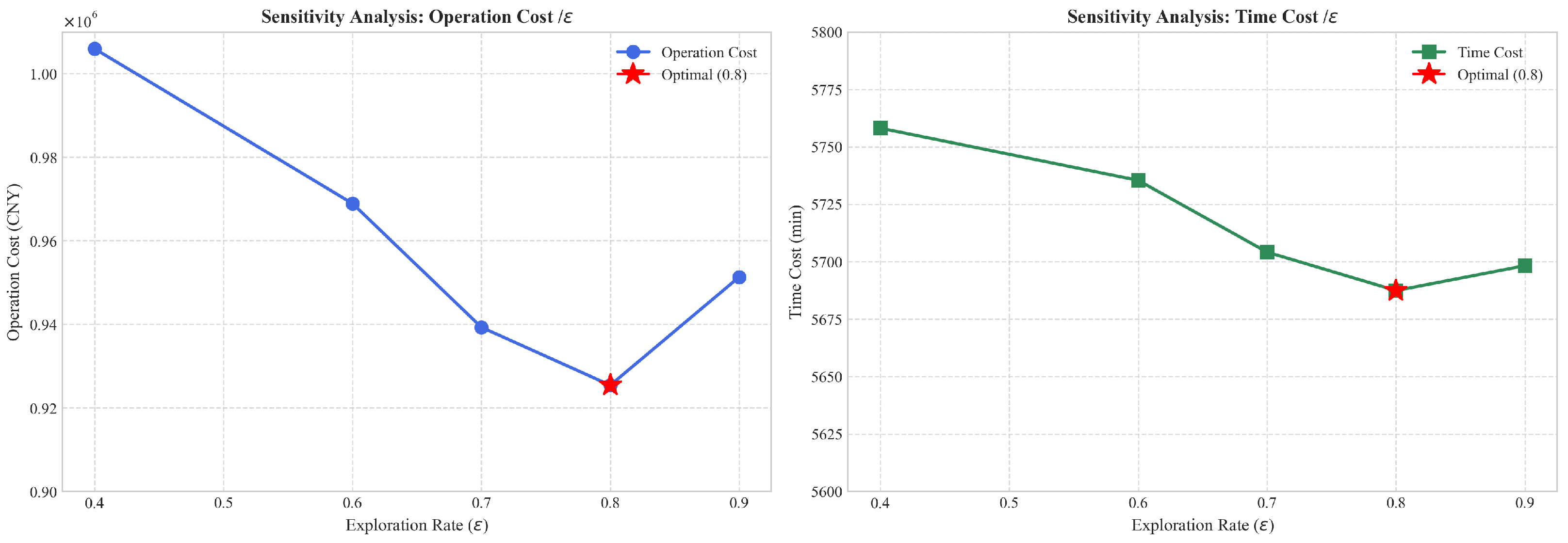 plays a critical role in balancing global exploration and local exploitation. A lower exploration rate restricts operator diversity, which may cause the algorithm to be trapped in local optima and subsequently increase operational costs. The optimal search performance is achieved when
