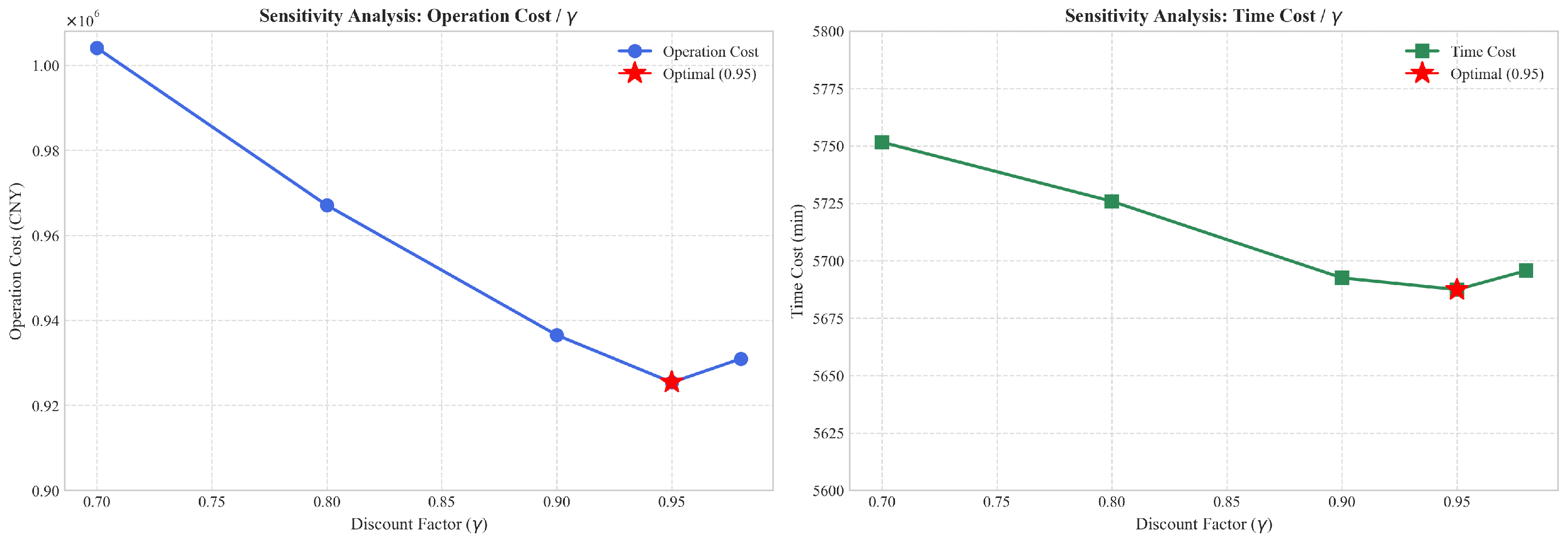 The proposed reward function provides a symmetric evaluation of the independent contributions of cost and time, preventing any single objective from dominating the signal. In Equation (