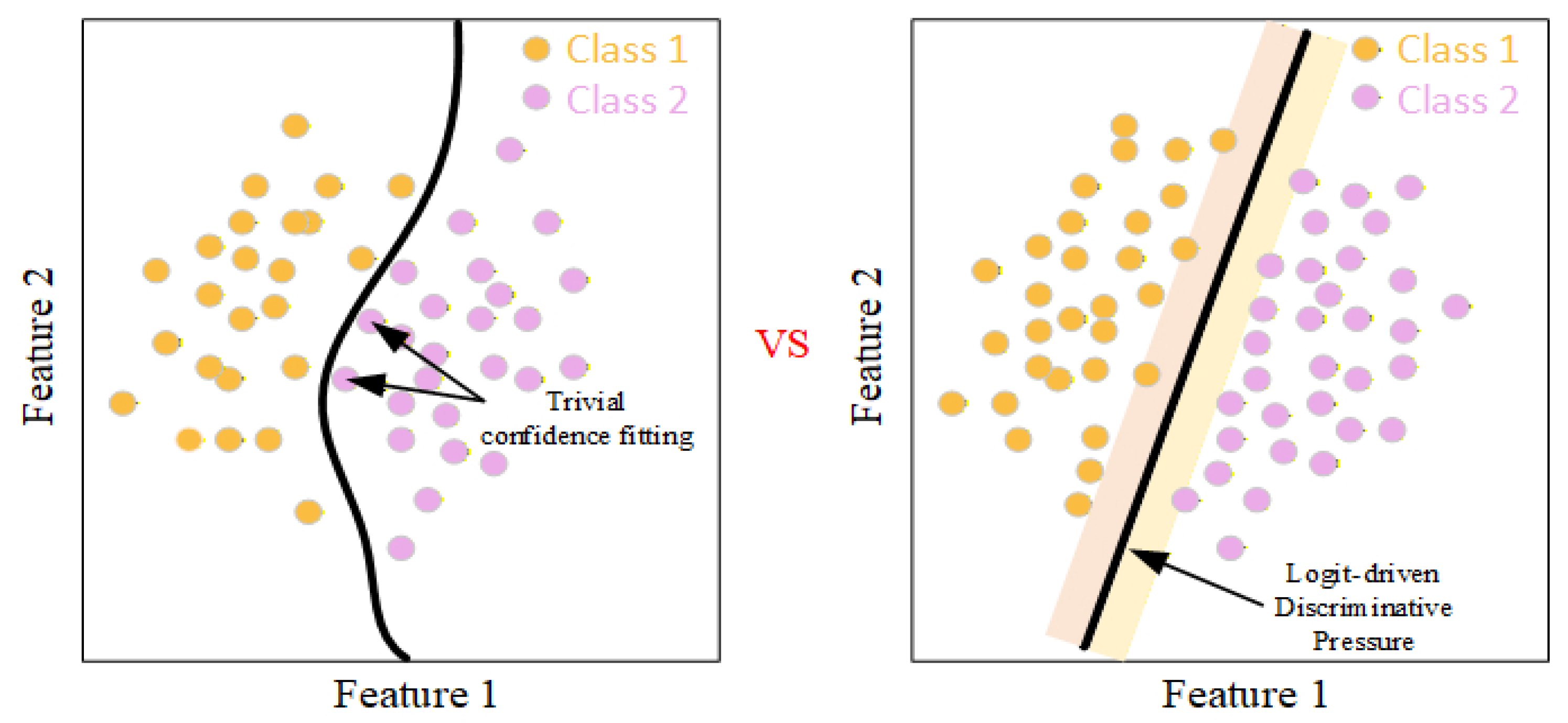 Geometric illustration of the student margin mechanism (baseline vs. SPKD).