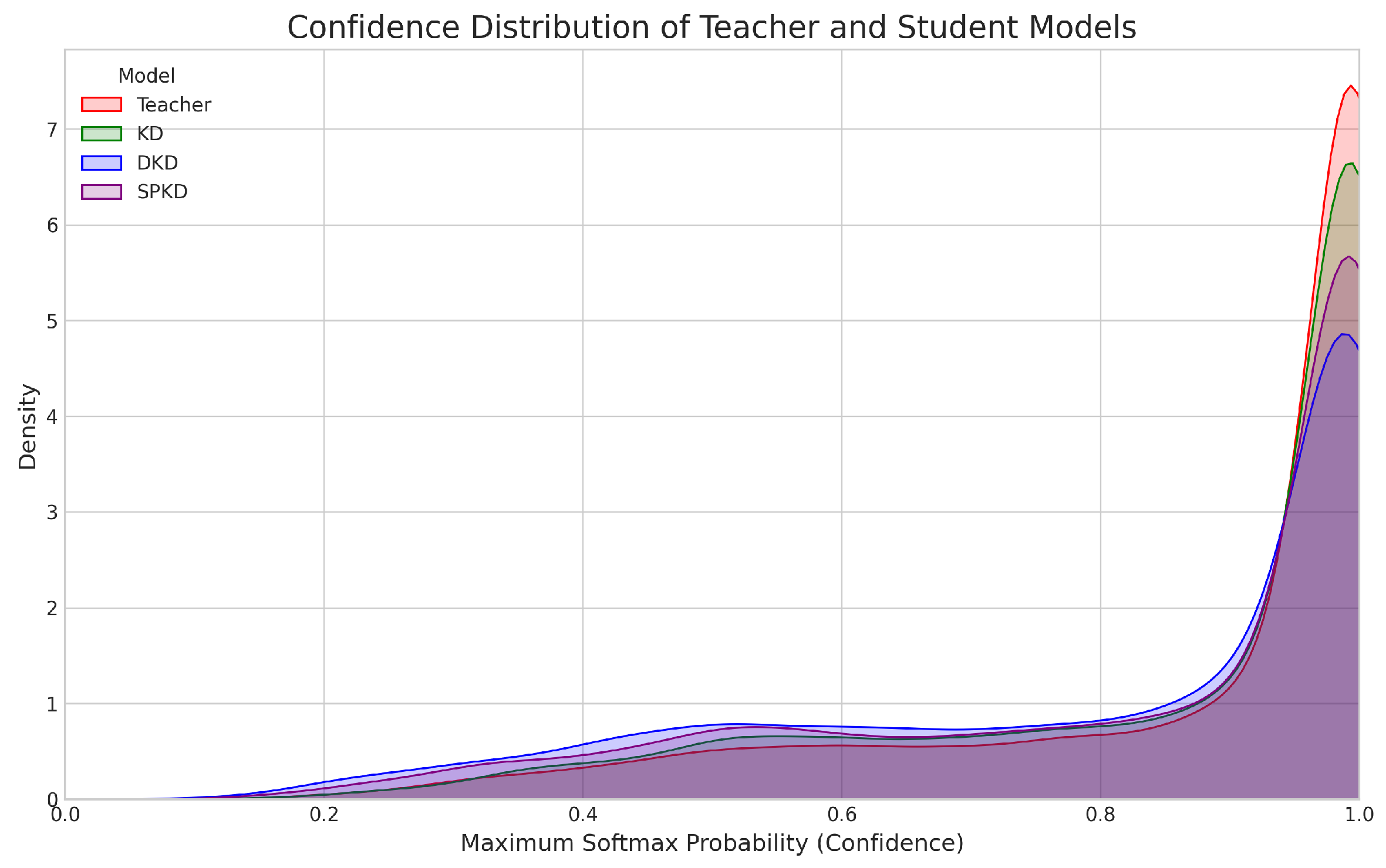 SPKD effectively balances learning teacher’s confidence without replicating overconfidence.