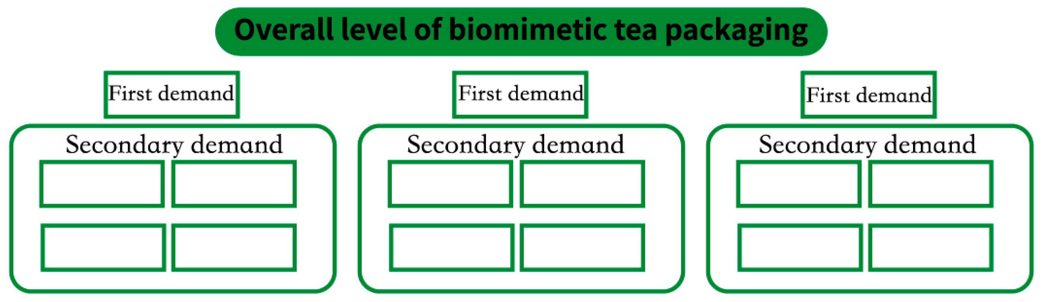 29]. By mapping designers’ needs to functional specifications, it derives optimization strategies for biomimetic tea packaging design [
