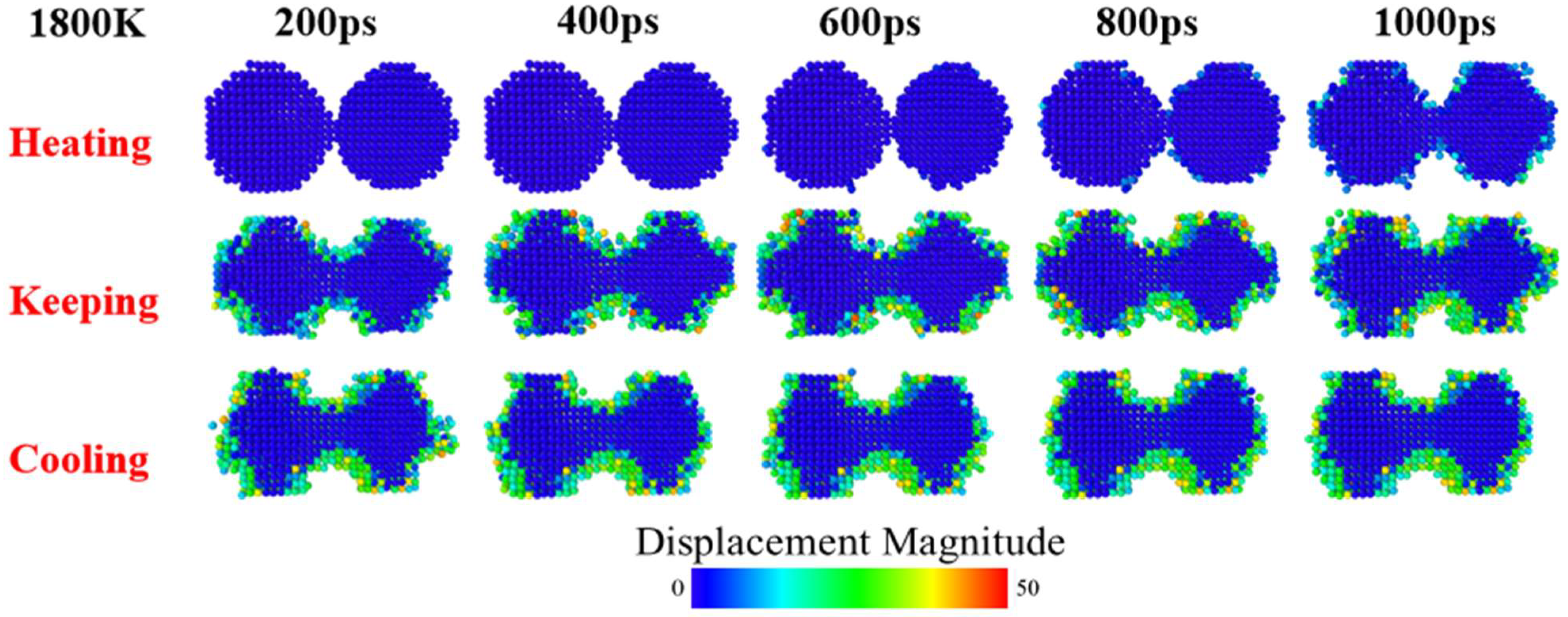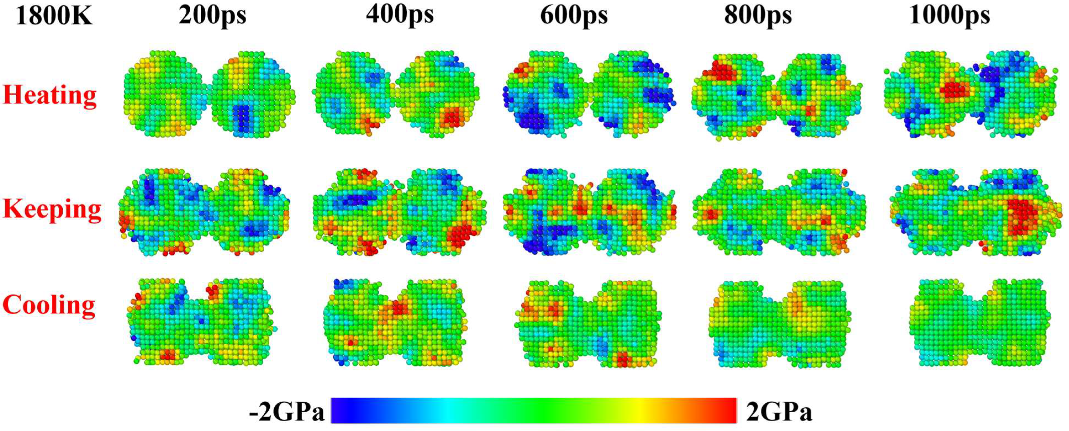 - Liu, J.; Lv, W.; Mou, Y.; Chen, C.; Kang, Y. Coalescence behavior of Cu nanoparticles during sintering: Based on atomic scale to macro scale. J. Mater. Res. Technol. 2023, 27, 2490–2507. [Google Scholar] [CrossRef]