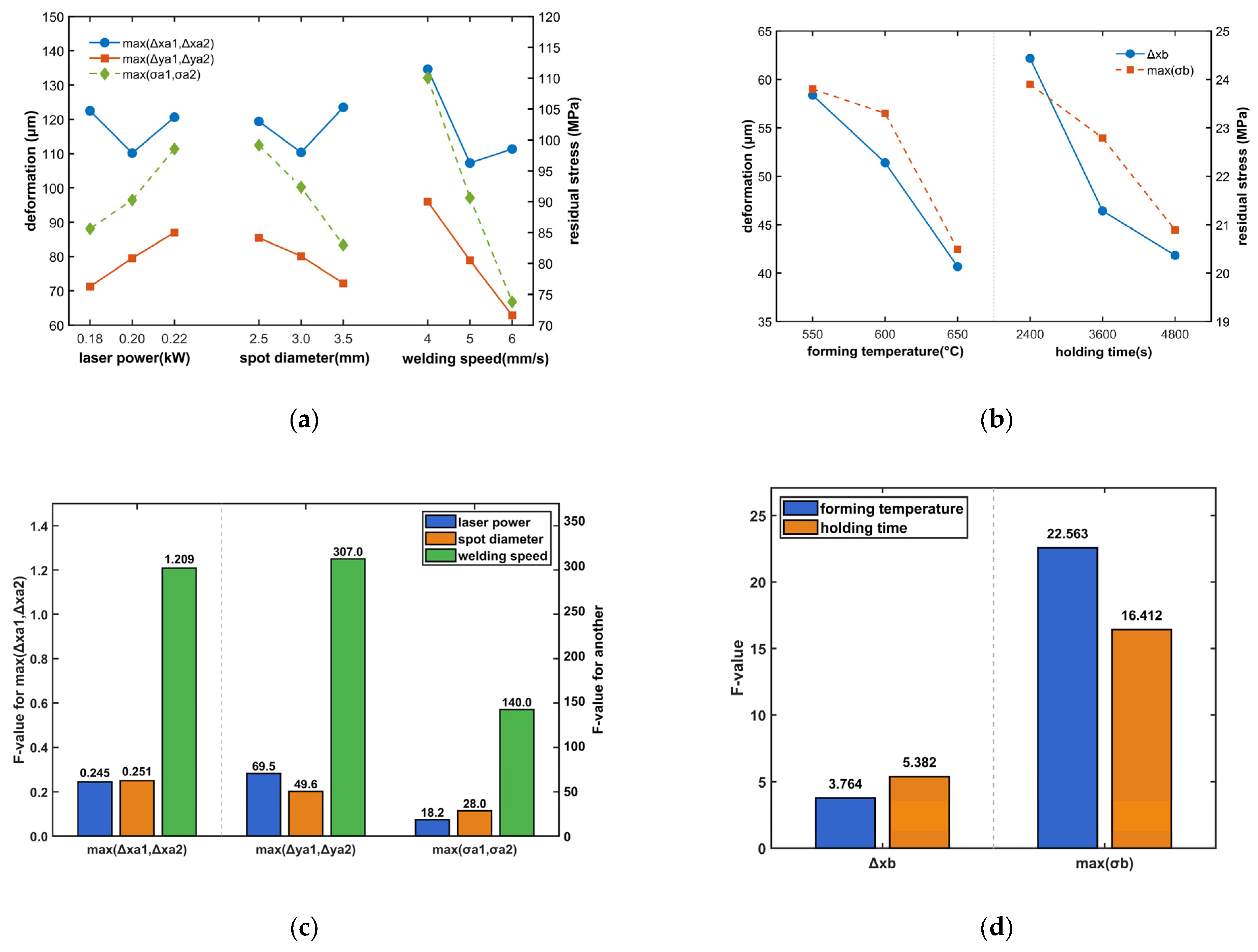 - The sensitivity ranking of process parameters to pointing accuracy is quantified. In laser welding, welding speed is the most significant factor affecting structural deformation, followed by laser power, and spot diameter has the weakest influence; in hot forming, processing temperature and holding time have similar effects on deformation, and the sensitivity of holding time is slightly dominant.