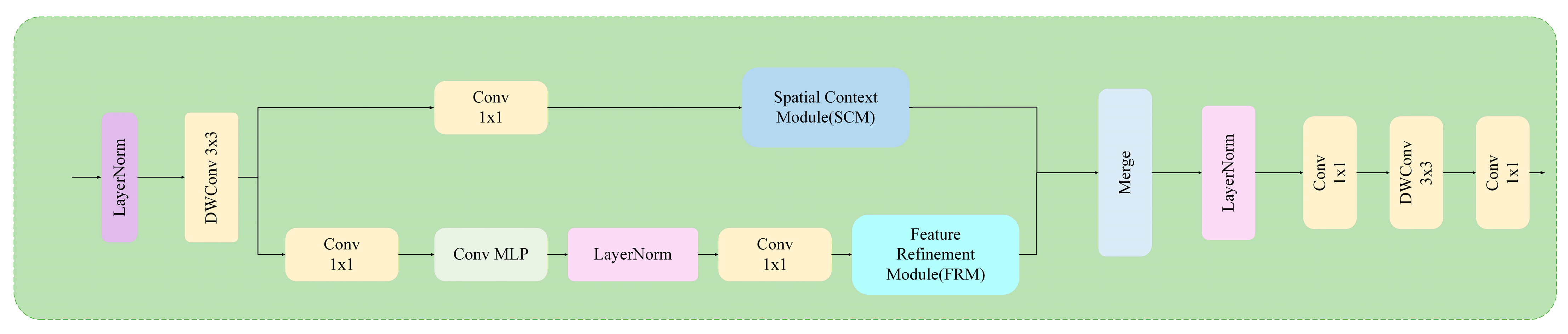 Figure 5. And ConvMLP completes cross-channel modeling to enhance feature expression. In FRM, high- and low-frequency information is extracted and fused to generate enhanced features through differential and element-wise multiplication, achieving collaborative modeling of global and local, low and high frequencies, while maintaining computational efficiency.