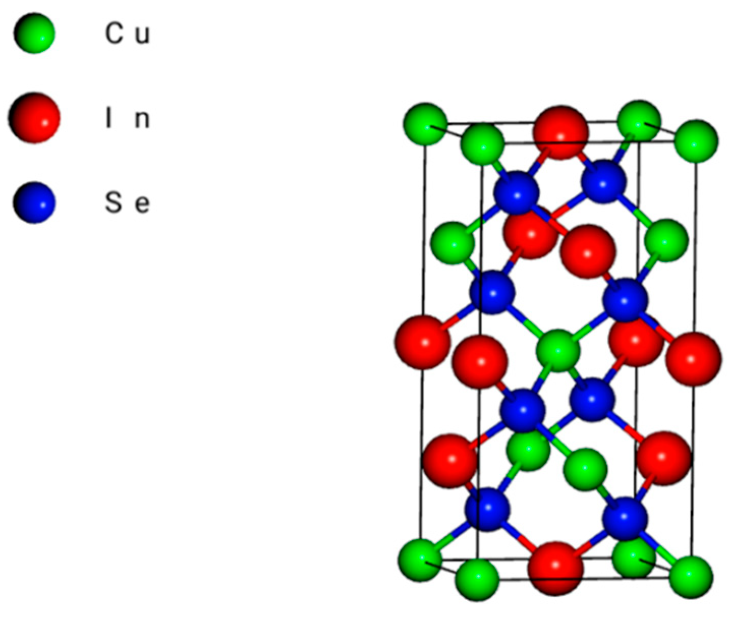 - Parkes, J.; Tomlinson, R.D.; Hampshire, M.J. Crystal data for CuInSe2. J. Appl. Cryst. 1973, 6, 414–416. [Google Scholar]