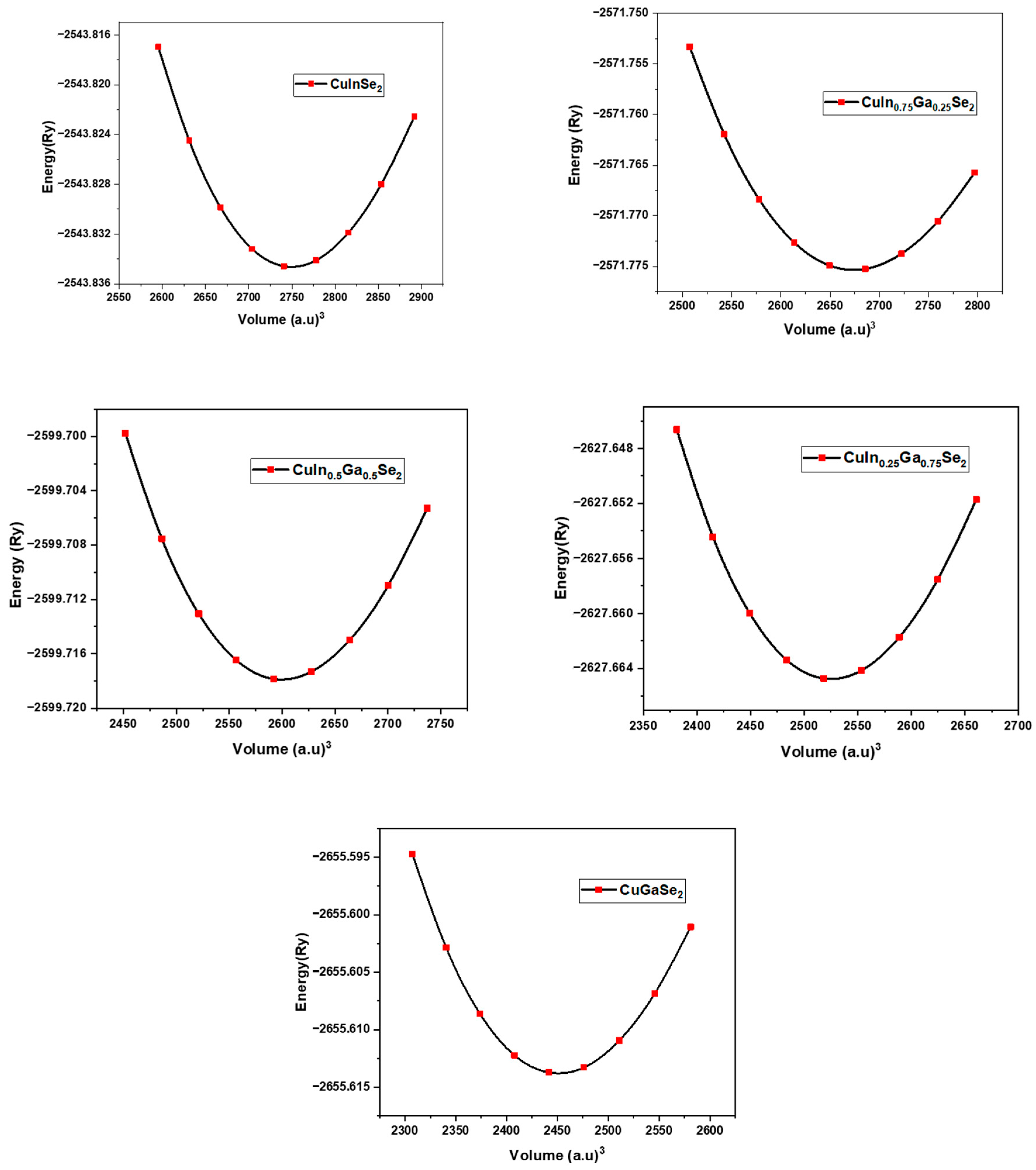 | CuInSe2 | CuIn0.75Ga 0.25Se2 | CuIn0.5Ga 0.5Se2 | CuIn0.25Ga 0.75Se2 | CuGaSe2 | |