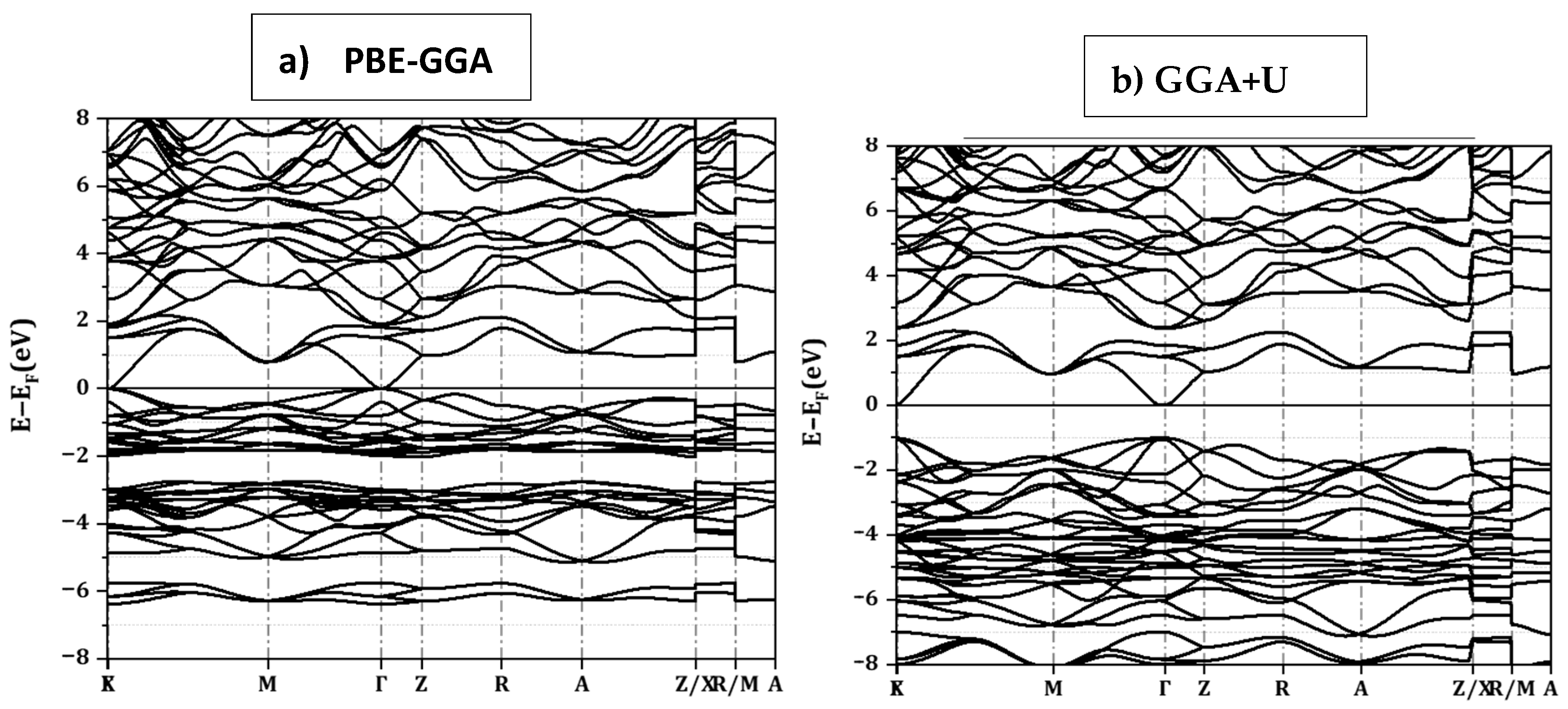 - Himmetoglu, B.; Floris, A.; De Gironcoli, S.; Cococcioni, M. Hubbard-corrected DFT energy functionals: The LDA+U description of correlated systems. Int. J. Quantum Chem. 2014, 114, 14–49. [Google Scholar]
