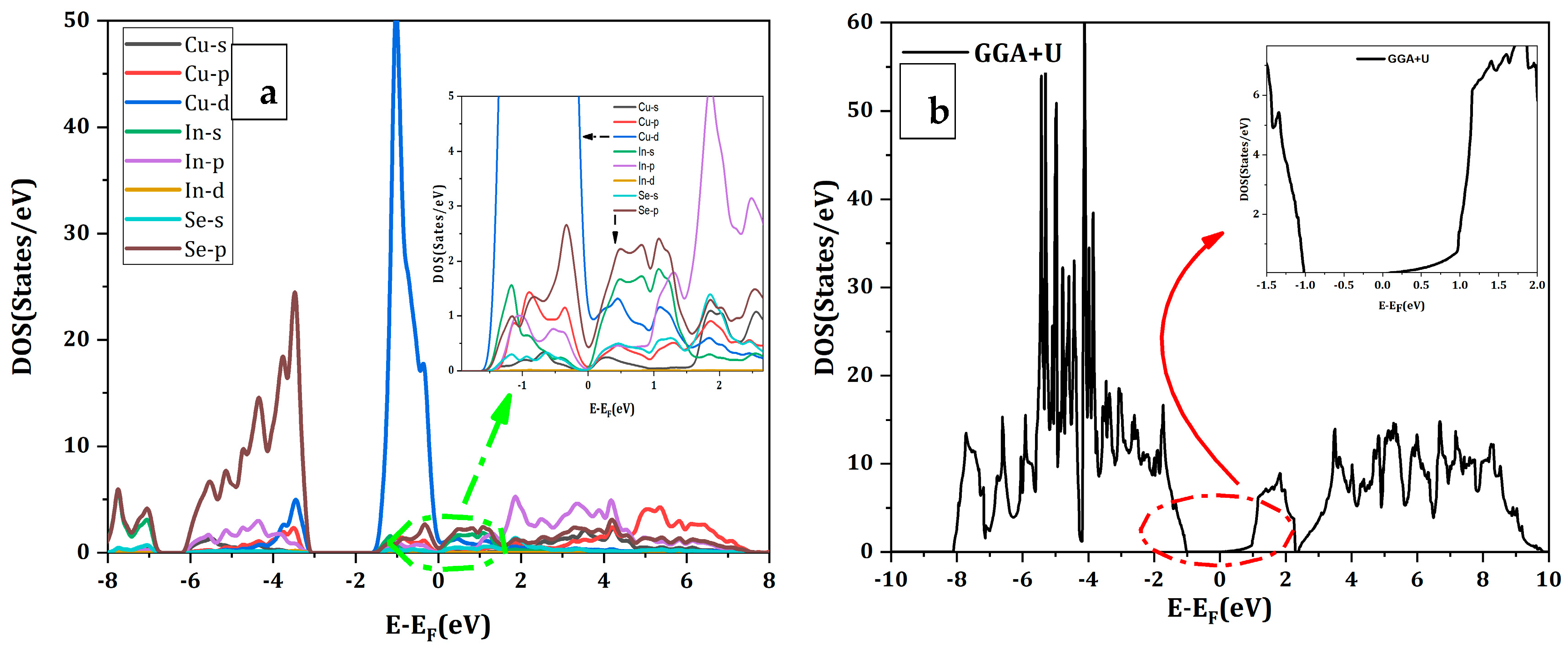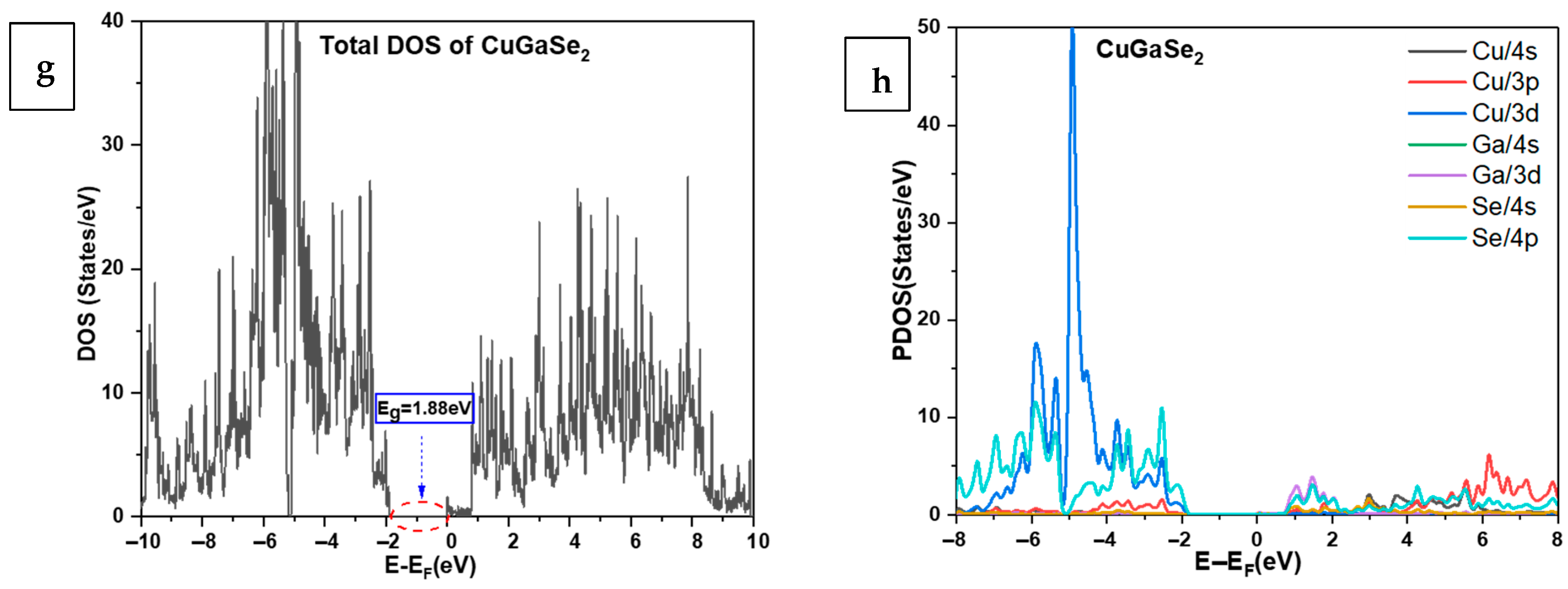 3.3. Band Structure and Density of States of CuInSe2 Using GGA