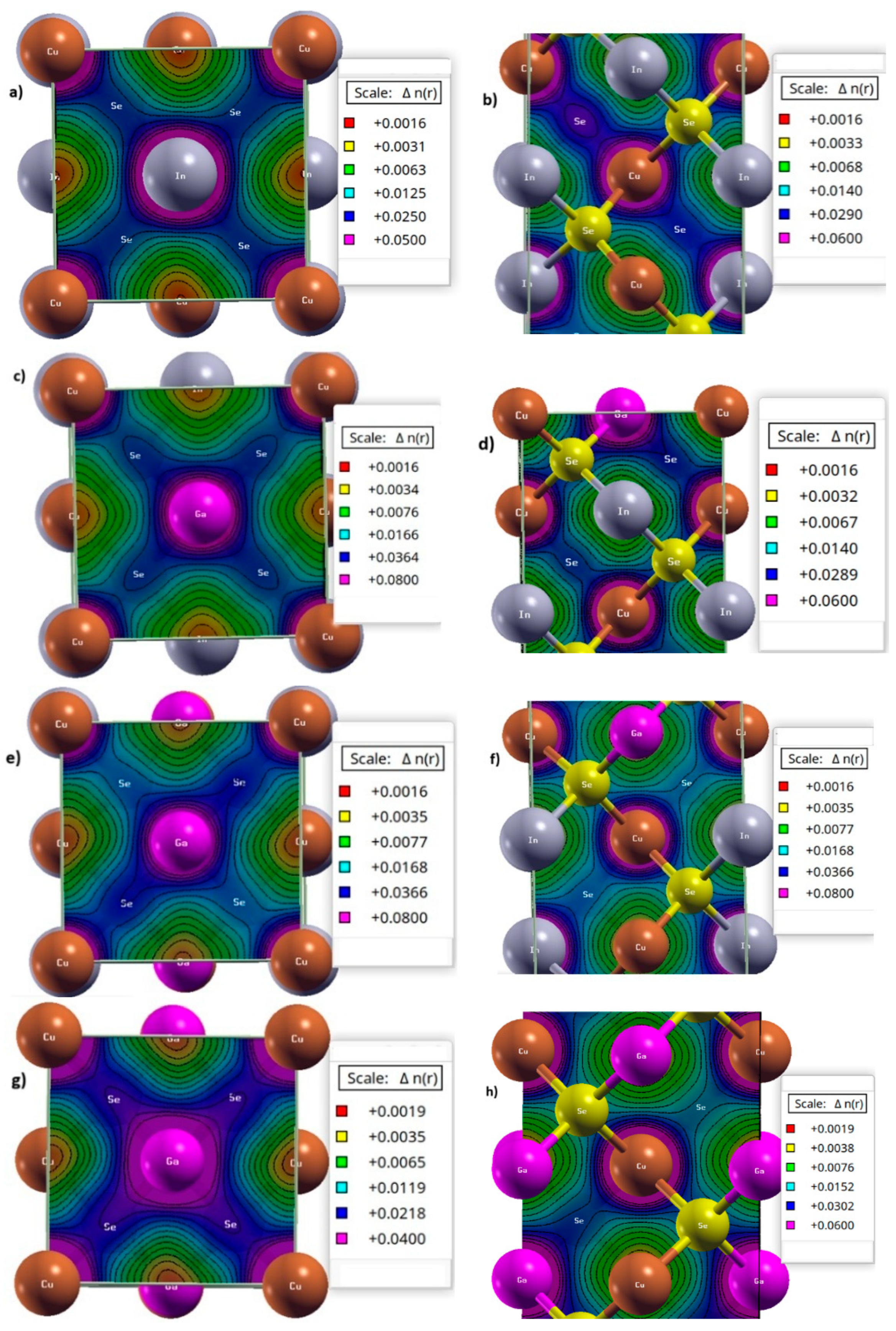 - Belhadj, M.; Tadjer, A.; Abbar, B.; Bousahla, Z.; Bouhafs, B.; Aourag, H. Structural, electronic and optical calculations of Cu(In,Ga)Se2 ternary chalcopyrites. Phys. Status Solidi 2004, 241, 2516. [Google Scholar]