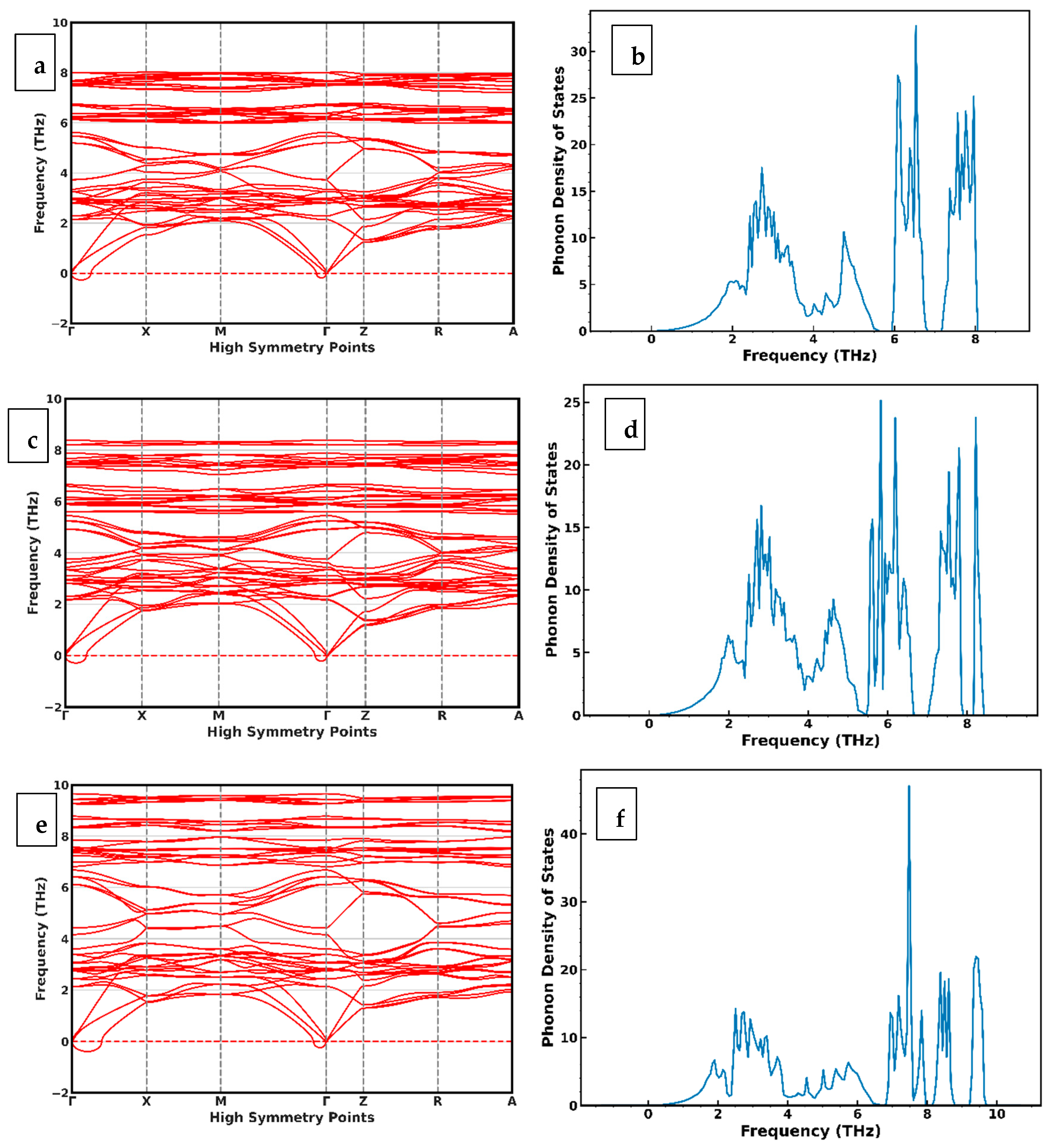 - Giannozzi, P.; de Gironcoli, S.; Pavone, P.; Baroni, S. Ab initio calculation of phonon dispersions in semiconductor. Phys. review. B Condens. Matter 1991, 43, 7231–7242. [Google Scholar]