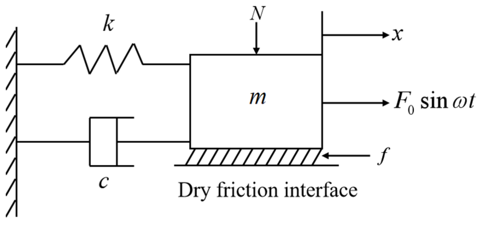 - Hong, H.; Liu, C. Coulomb friction oscillator: Modelling and responses to harmonic loads and base excitations. J. Sound Vib. 2000, 229, 1171–1192. [Google Scholar] [CrossRef]